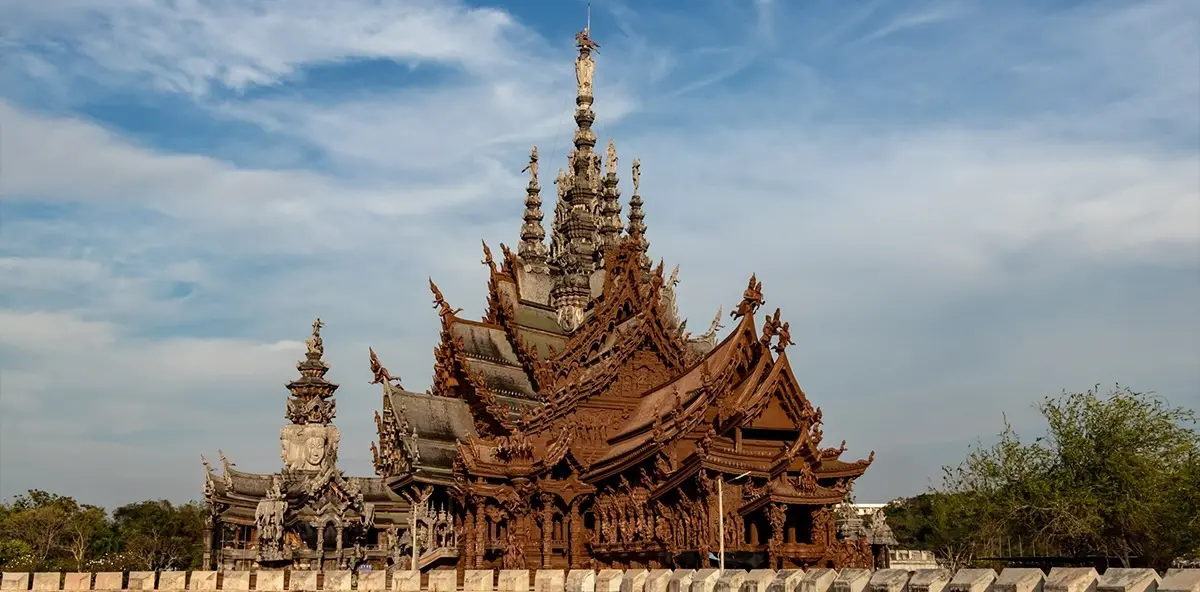 The Sanctuary of Truth Museum is a breathtaking architectural marvel located in Pattaya, Thailand. This unique museum is not just a showcase of exquisite craftsmanship but also a profound reflection of Thai culture and spirituality. Built entirely of wood without the use of nails, the Sanctuary of Truth stands at an impressive height and is adorned with intricate carvings that depict various philosophical themes, historical figures, and mythological stories. Visitors can explore the museum's vast grounds, which include serene gardens and stunning views of the ocean. The structure is a living testament to the dedication of artisans who have spent decades creating this masterpiece, making it a must-visit for anyone interested in art, culture, and history. The museum also offers guided tours that provide insight into the symbolism behind the carvings and the significance of the structure itself. Additionally, there are cultural performances and workshops available, allowing visitors to engage with traditional Thai art forms. The ambiance is peaceful, providing a perfect escape from the bustling city life. **Why You Should Visit:** • Experience the unique wooden architecture that is built without nails. • Discover the rich history and cultural significance of Thai art and philosophy. • Enjoy breathtaking views of the ocean from the museum grounds. • Participate in cultural workshops and performances to immerse yourself in local traditions. In conclusion, the Sanctuary of Truth Museum is not just a place to visit; it is an experience that enriches your understanding of Thai culture and artistry. Don't miss the opportunity to witness this extraordinary site during your stay in Pattaya.
