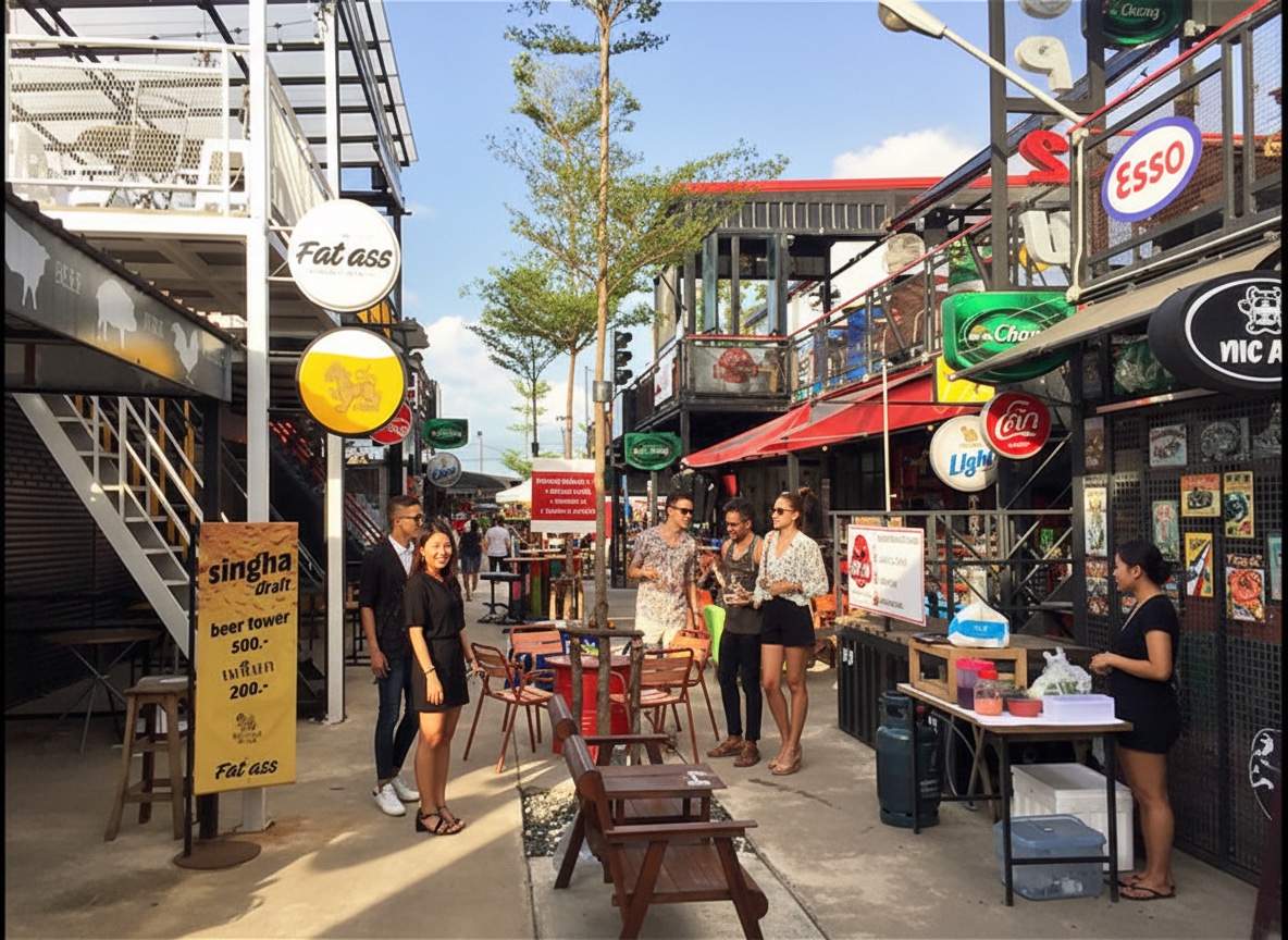 Chillva Night Market in Phuket is a vibrant and lively destination that consistently delights its visitors, earning an impressive average rating of 4.4 out of 5 stars from nearly 10,000 reviews. Recent visitors praise the market for its dynamic atmosphere, created by colorful shipping containers, live music, and a youthful, bohemian vibe. This night market is not only a hotspot for local street food enthusiasts but also a hub for fashion, handmade crafts, and souvenirs, offering a laid-back and authentic experience for both tourists and locals alike. The market's lively ambiance is enhanced by its live performances and ample seating areas, making it a perfect evening outing spot.